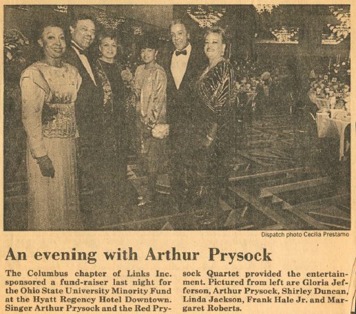The Columbus (OH) Chapter of the Links, Incorporated hosted an event featuring jazz recording artist Arthur Prysock at the Hyatt Regency Hotel in Columbus raising funds for their endowment at OSU in support of minority scholarships.