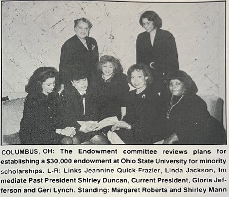 The Columbus (OH) Chapter of The Links, Incorporated, created a $30,000 endowment at The Ohio State University for minority scholarships. This was a milestone as the Columbus(OH) Chapter of the Links, Incorporated was the first African-American organization to establish an endowment at the Ohio State University.